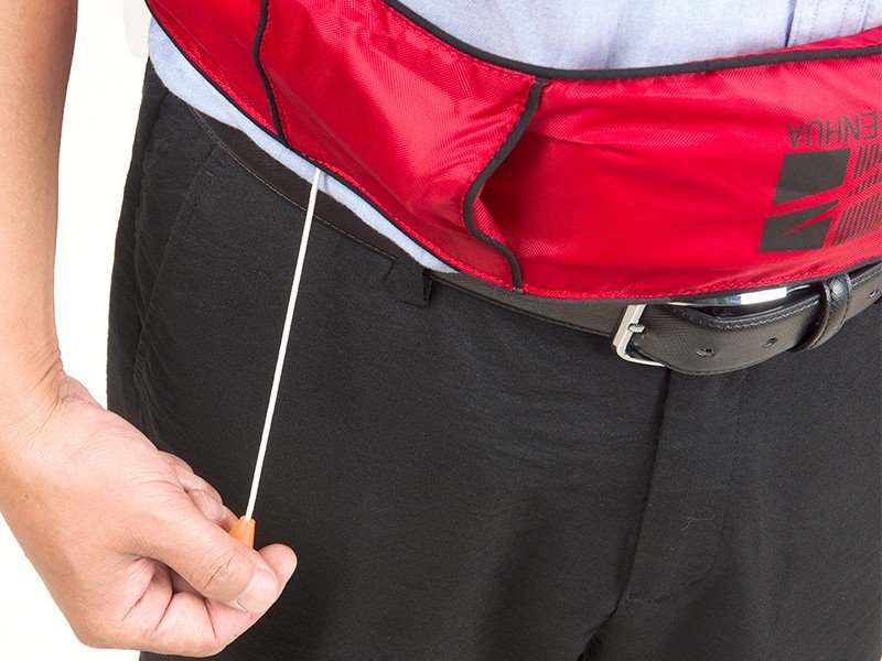 En caso de caer en el agua, puede inflarse tirando de la cuerda en forma manual si se requiere esperr a ser recastado o estas lejos de orilla, en forma de aro salvavidas de vida, que puede mantener al usuario por encima del agua.